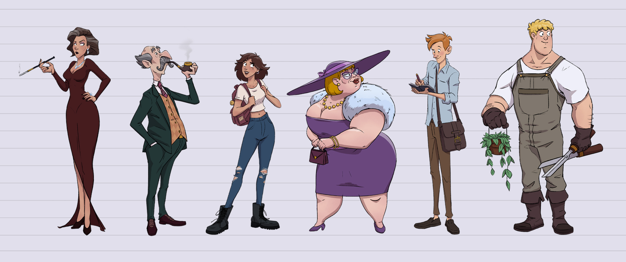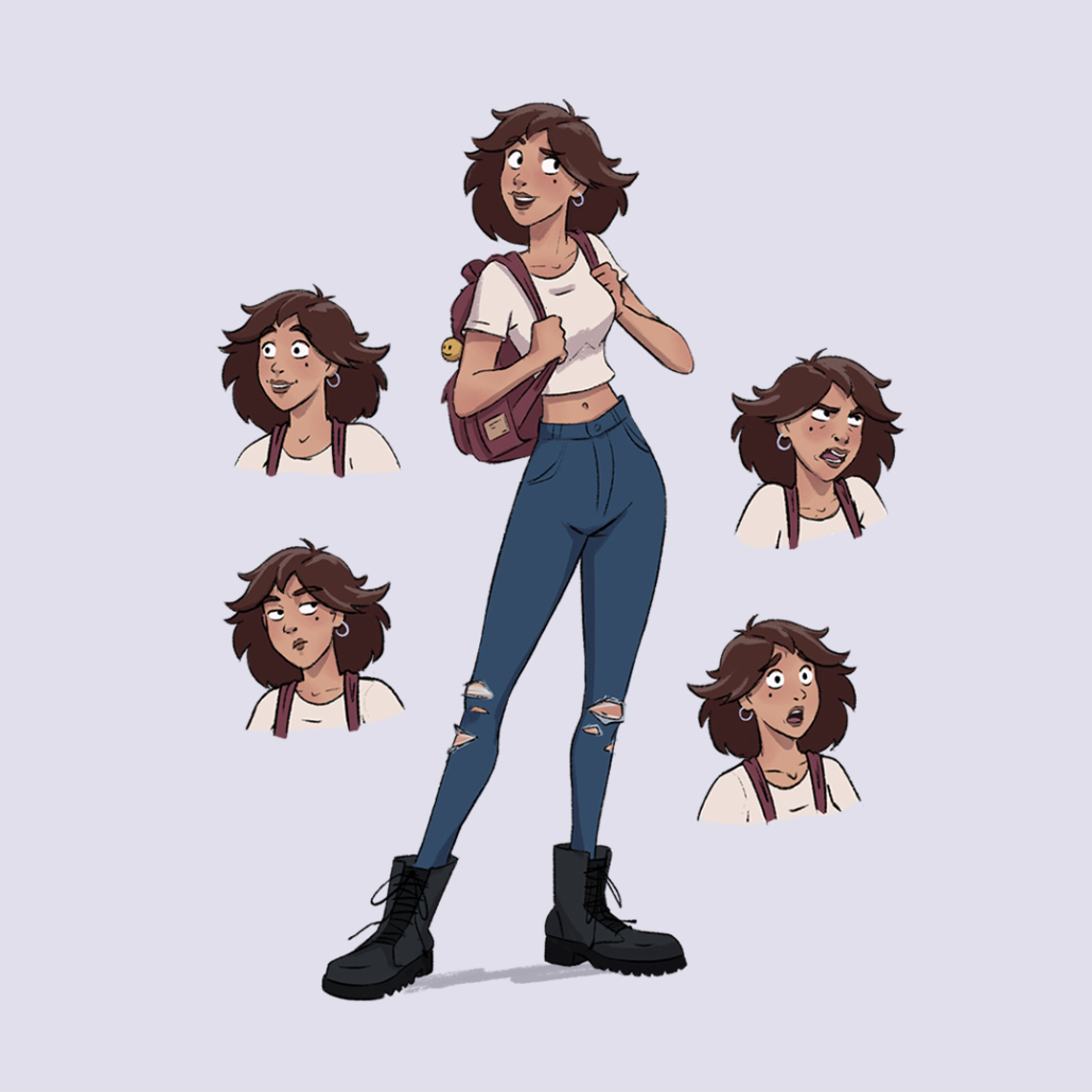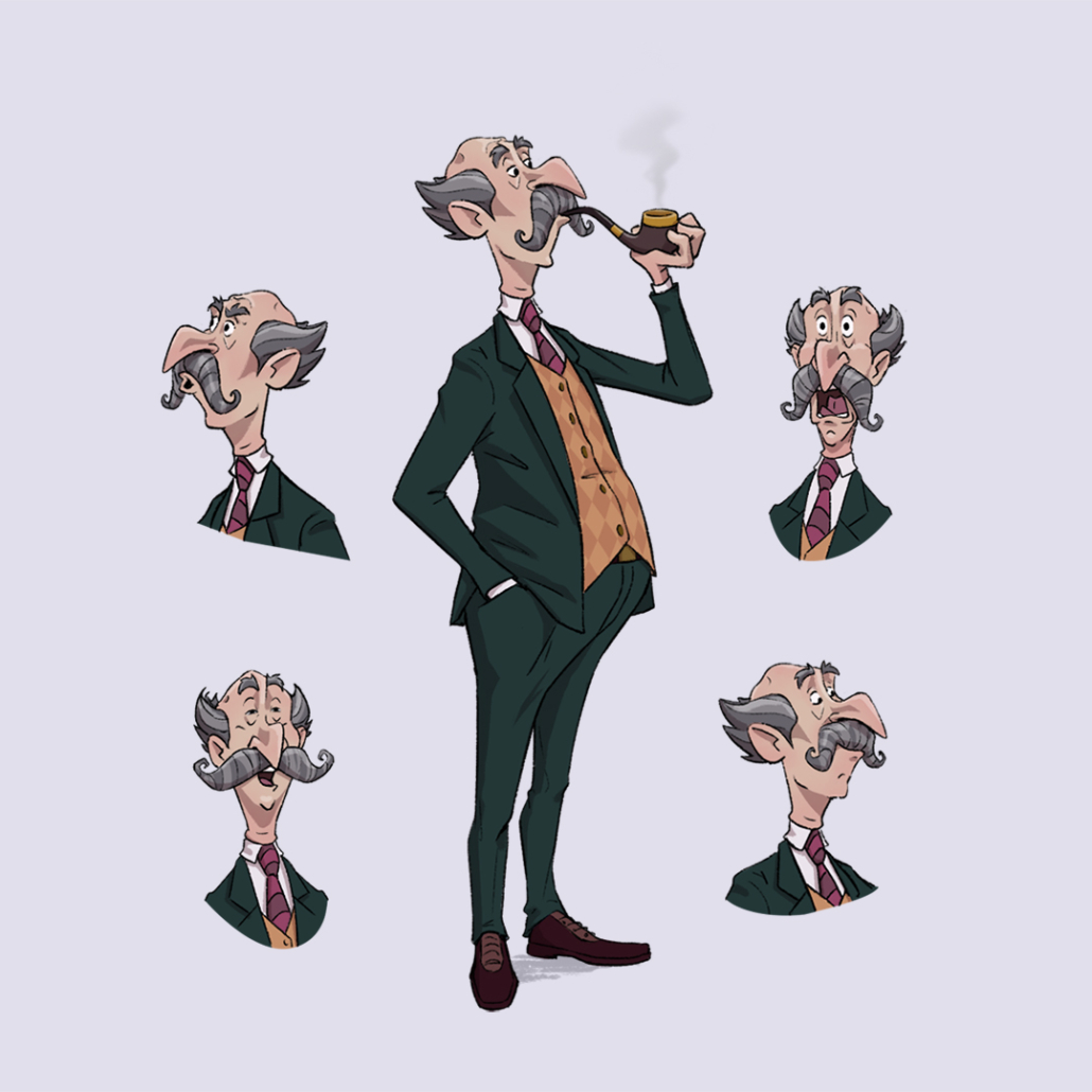 I also created a set of facial expressions for each character to showcase their emotional range while maintaining consistency with their personality and visual style.